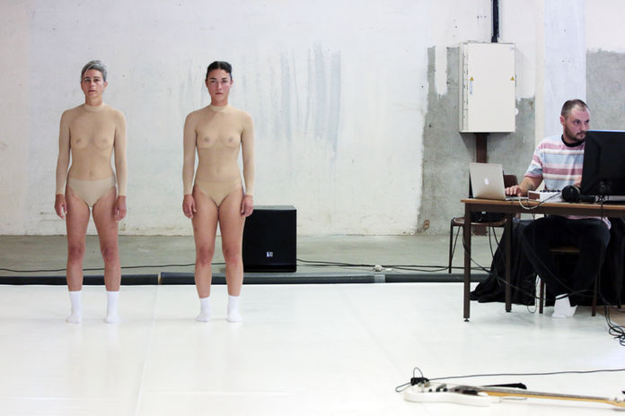 Sur le plateau, il s’agit d’un défi à trois, un manipulateur de sons et deux danseuses. Comment le son peut-il alors perturber, encourager, exhorter la physicalité et la dramaturgie, et inversement ?